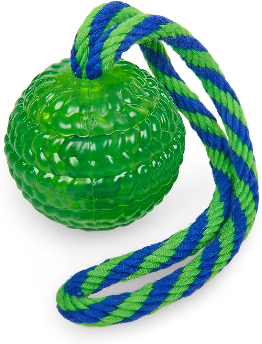 Supports dental health with a textured rubber ball that helps clean teeth and massage gums
